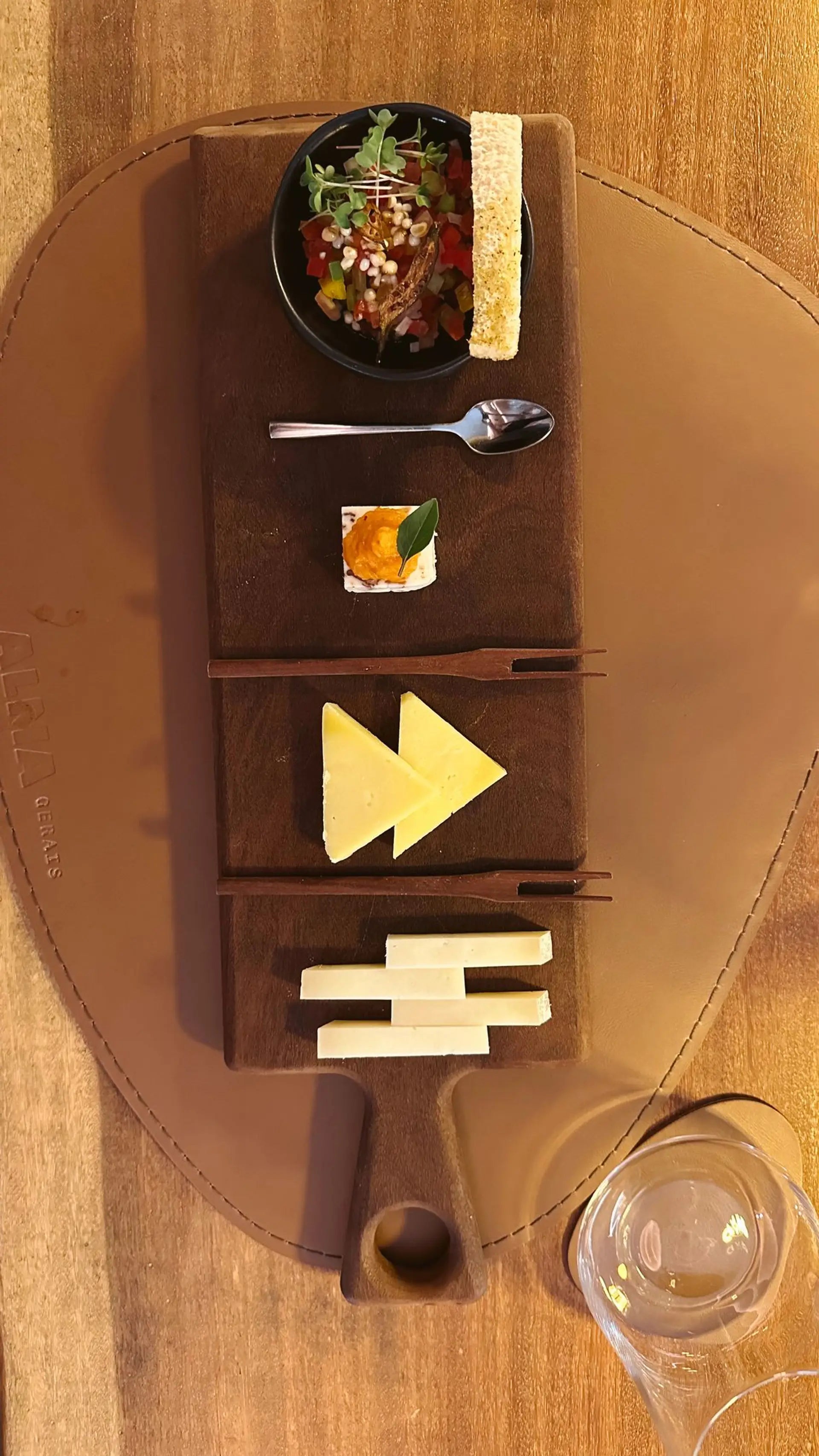 acompanhados de uma tábua com pequenas preparações elaboradas por nosso chef, pensadas para valorizar aromas, sabores e texturas.